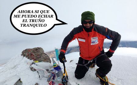“La gente es muy pesada, y cuando estás ahí arriba no ves a nadie que no quieras ver. Y aunque a veces puedas sentirte muy solo, no tienes que soportar las gilipolleces de la peña. No es que la gente me caiga mal, es que no los aguanto simplemente. Ahí arriba puedes estar horas y horas sin hablar con nadie, incluso días. Es lo que más me gusta de coronar ocho miles. Mañana igual me levanto con ganas y me piro otra vez. ¡No me hagas más preguntas! ¡Coño!”