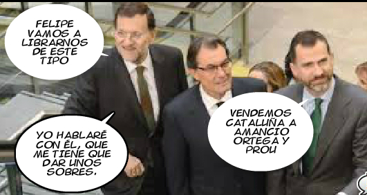 Amancio Ortega se ha ofrecido para hacerse con el 51 % de Cataluña y el 30 % del país Vasco. Le ha hecho saber a su rey que hará lo que sea por España. Quiere montar en Cataluña un gran polígono independiente, que se convierta en una sucursal puente con el mediterráneo para que le sirva de enlace para expandir Inditex hacia Egipto y tierras Árabes. A Amancio no le gustan nada las babuchas y las sabanas que usan para vestir, son muy feas y no tienen nada de moderno.