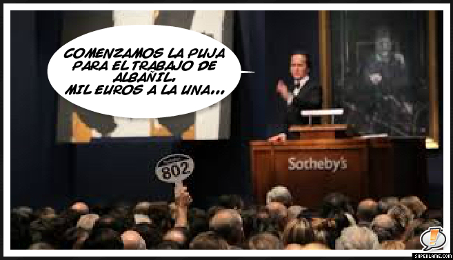 Esta semana Sothesby’s va subastar un trabajo de fregasuelos y otro de aparca coches con un precio de salida de dos mil euros cada uno. Se ha levantado mucha expectación para conseguirlos. Han llegado para pujar parados de toda Europa y hasta algún que otro refugiado de Siria que tendrán que hacerlo al yate porque no disponen de mucho cash.