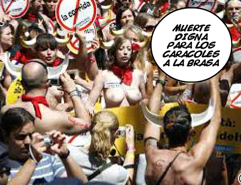 Una manifestación antitaurina acaba defendiendo el derecho a una muerte digna para los caracoles a la brasa.