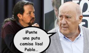 “¡No soporto verles mal vestidos! ¡Me pongo malo! Sobretodo a los de Podemos. No es que lleven ropa sin estilo, pasada de moda y que carezcan de gusto, es que Pablo Iglesias la lleva grande. ¡Ponte la chaqueta de tu talla! ¡Cabrón! ¡Más barata la ropa que en Zara no hay! ¿Cómo nos van a representar en el extranjero? ¡Vaya gobierno! Parecemos una comunidad de vecinos de un barrio obrero”. Ha dicho Amancio que se ha ofrecido a llevarles la ropa personalmente y ponerles un estilista pagado por Zara. “Sí es preciso ajusto mi agenda y voy yo a vestirles. Aunque sea les pago a un escaparatista para que aprendan a conjuntar y a elegir bien la talla”.